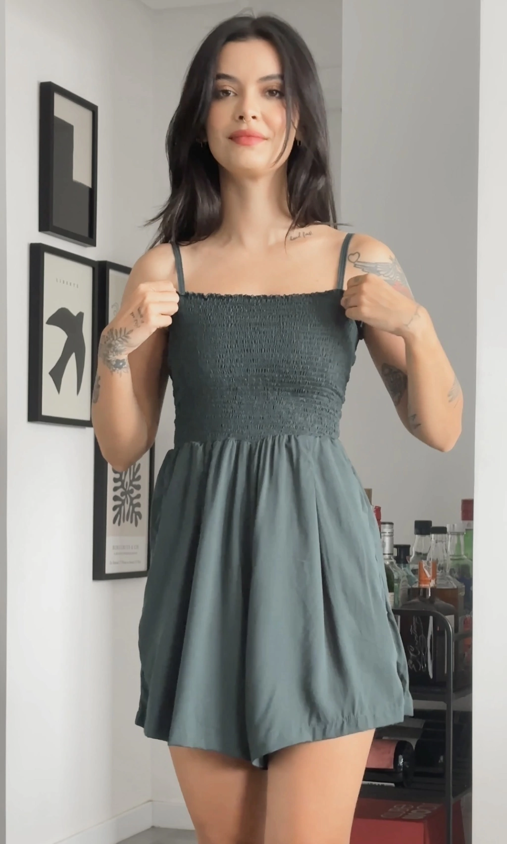 Confeccionado en 100% viscosa, este modelo ofrece una suavidad y frescura excepcionales. La correa ajustable permite un ajuste personalizado para mayor comodidad, mientras que el busto elástico asegura un soporte seguro y flexible. Las piernas anchas aportan un toque de elegancia y libertad de movimiento, haciendo de este modelo una opción ideal para cualquier ocasión.